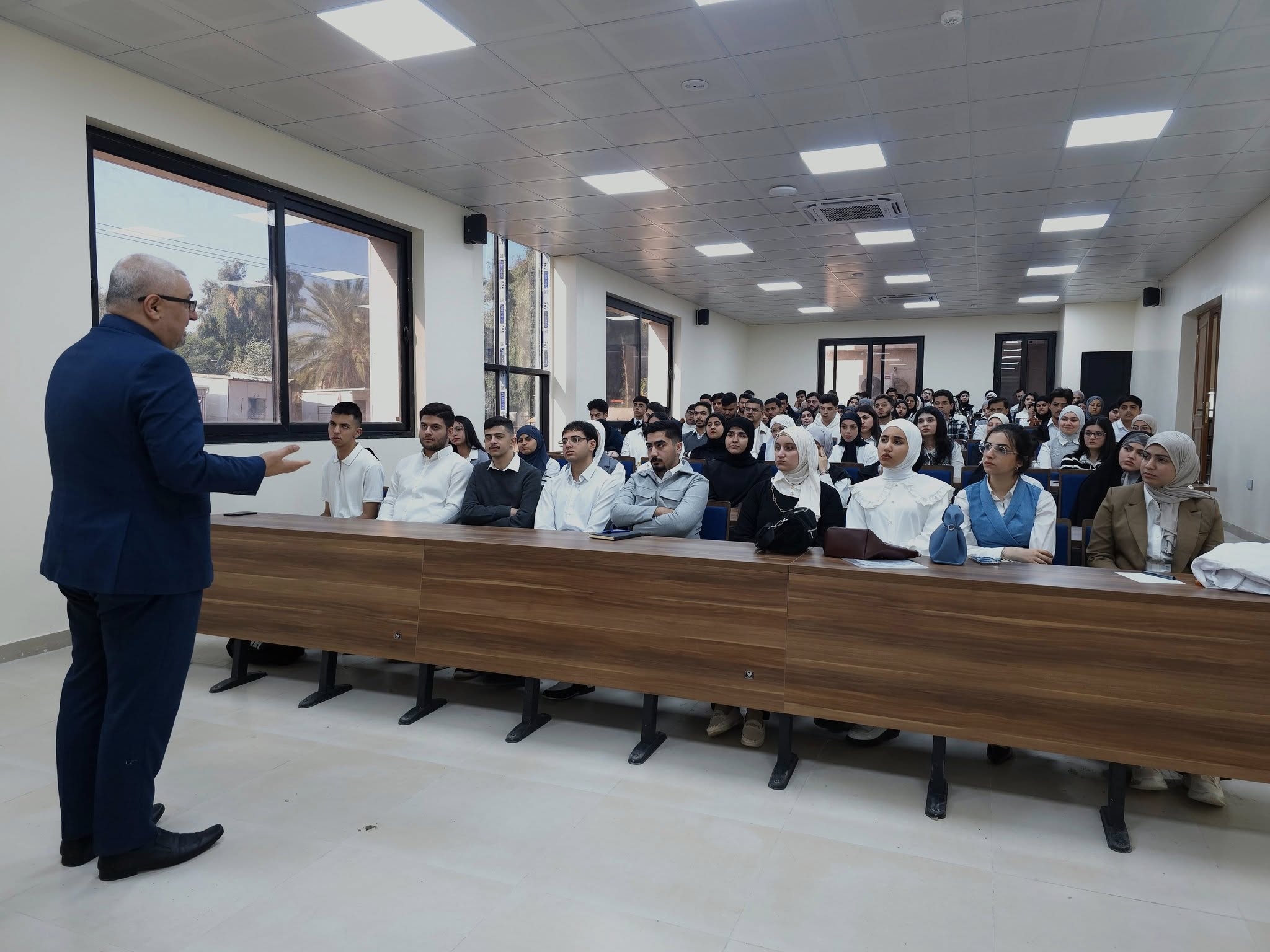 عميد كلية الصيدلة في جامعة النهرين يلتقي طلبة المرحلة الأولى ويوجه رسائل محفّزة لمسيرتهم الأكاديمية