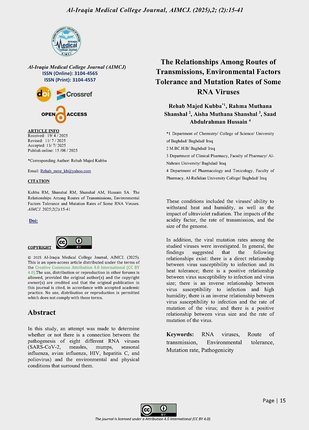 نشرت التدريسية م.م. عائشة مثنى شنشل من فرع الصيدلة السريرية – كلية الصيدلة/ جامعة النهرين بحثاً علمياً بعنوان: “The[…]