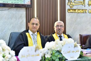 شارك الأستاذ الدكتور حيدر بهاء صاحب، عميد كلية الصيدلة ، في مناقشة أطروحة الدكتوراه للباحث أحمد ماجد عبد الحميد ضمن تخصص العلوم الصيدلانية في كلية الصيدلة جامعة الكوفة و الموسومة: