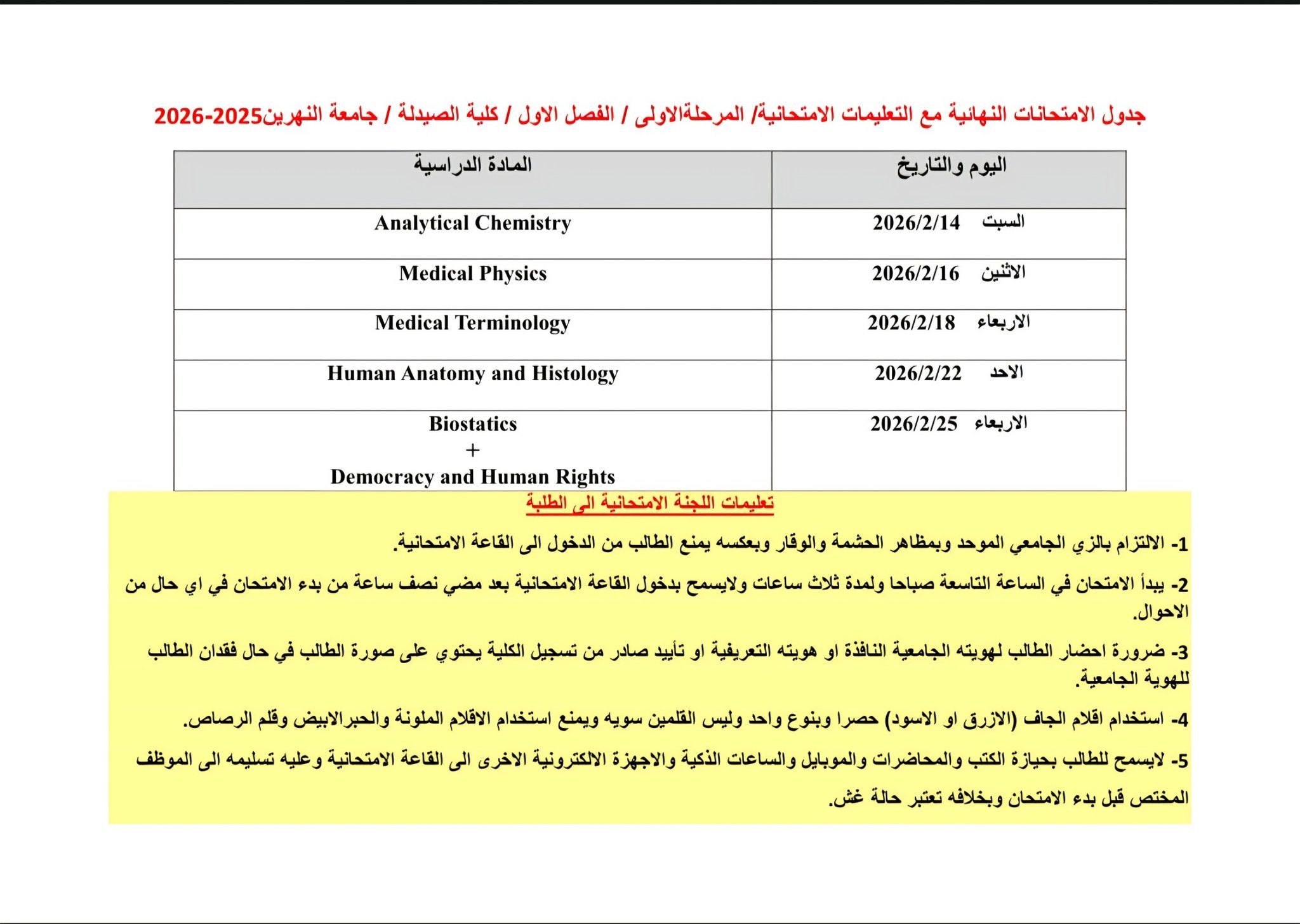 “كلية الصيدلة في جامعة النهرين تُعلن جدول الامتحانات النهائية لطلبة المرحلة الأولى” أعلنت كلية الصيدلة في جامعة النهرين صدور[…]