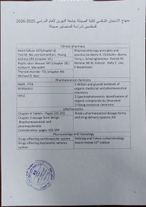 تعلن “كلية الصيدلة – جامعة النهرين عن منهاج الامتحان التنافسي للعام الدراسي 2026/2025 للمتقدمين لدراسة الماجستير في تخصص الصيدلة.