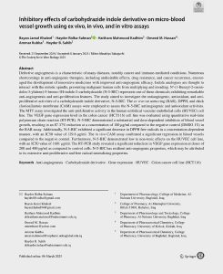 يحمل البحث عنوان: “التأثيرات المثبطة لمشتق الكاربوهيدرازيد من الإندول على نمو الأوعية الدموية الدقيقة باستخدام الاختبارات داخل وخارج الجسم الحي”