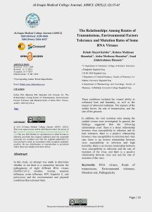 “The Relationships Among Routes of Transmissions, Environmental Factors Tolerance and Mutation Rates of Some RNA Viruses”
