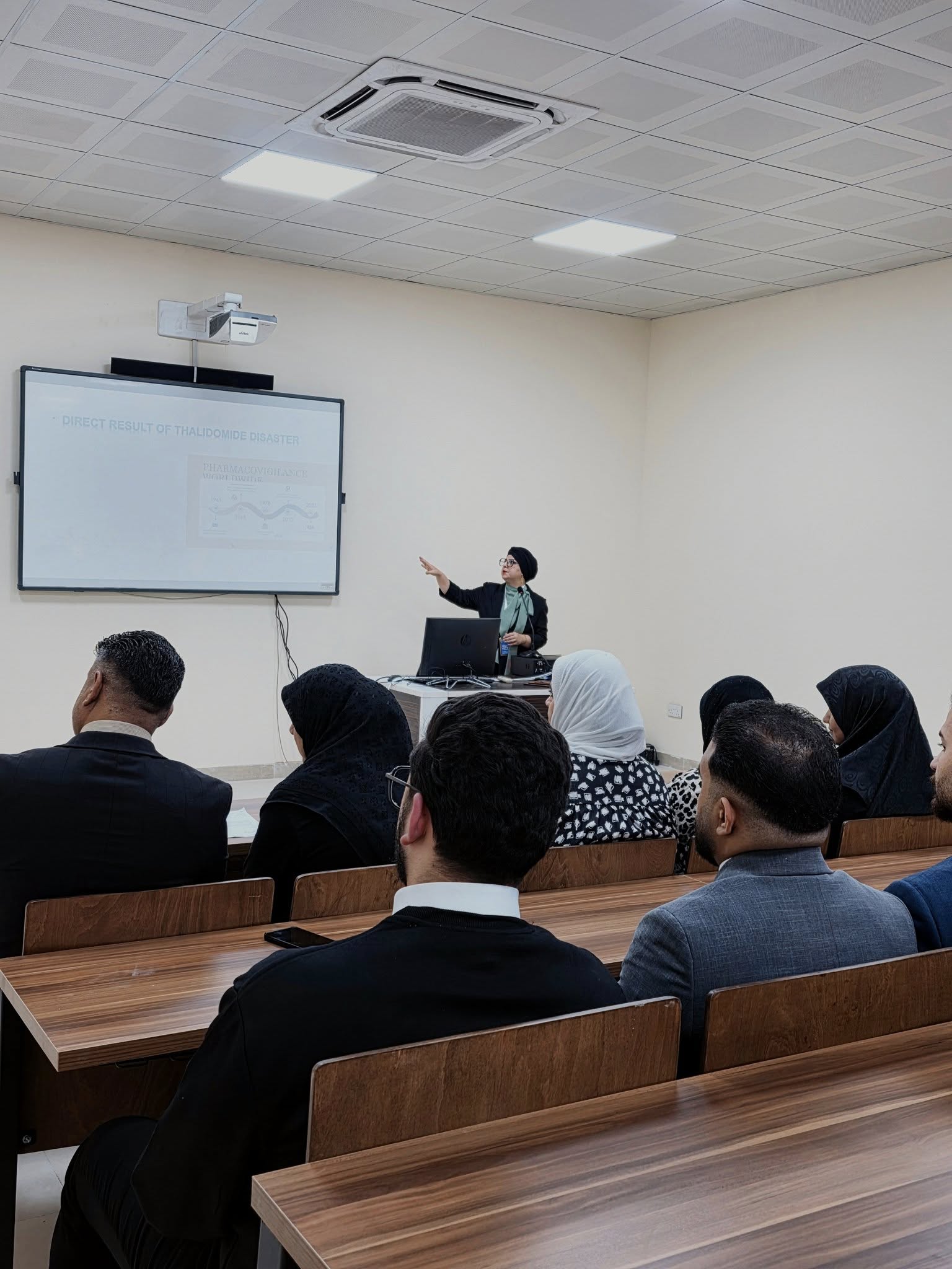 قدّمت الورشة الصيدلانية تمارة عماد، مدير شعبة اليقظة الدوائية في دائرة مدينة الطب، حيث تناولت مجموعة من المحاور العلمية والتطبيقية المتعلقة بآليات الإبلاغ عن الآثار الجانبية للأدوية، وأهمية رصد سلامة المستحضرات الدوائية بعد تسويقها، فضلاً عن عرض أبرز المعايير العالمية المستخدمة في متابعة مأمونية الأدوية.