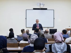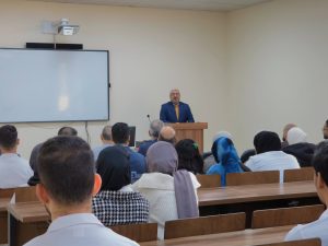 وعلى هامش الزيارة، أُقيمت ندوة توعوية لطلبة المرحلتين الأولى والخامسة، افتُتحت بكلمة للسيد عميد الكلية استذكر فيها السيرة العلمية العطرة للبروفيسور الراحل وأنجزاته الأكاديمية، مؤكدًا حرص عمادة الكلية على تطوير البنى التحتية العلمية واستدامة التميّز في التعليم الصيدلاني.