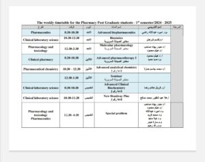 تعلن عمادة كلية الصيدلة/ جامعة النهرين عن بدء مباشرة طلبة الدراسات العليا اعتباراً من يوم الثلاثاء الموافق 2024/9/10
